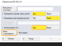 Нажмите кнопку <Вкл.> для параметра <Использовать IEEE 802.1X>