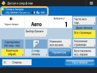 Служит для отображения состояний параметров, таких как формат бумаги для печати и количество экземпляров. Подтвердите параметры, чтобы печать была выполнена должным образом. Для изменения значений нажмите кнопку, расположенную под этой областью. Чтобы изменить количество экземпляров для печати, введите нужное число с помощью цифровых клавиш.