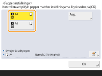 Om pappersformatet/-typen som visas är ett annat än det du fyllt på, <Ställ in>.