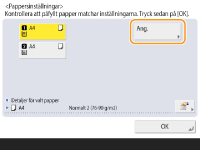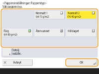 Om papperstypen finns inte visas, tryck på <Detalj. inställn.> för att välja från en lista.