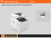 Åtgärder vid meddelandenExempel: När ett pappersstopp har inträffat