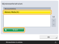 2 | Välj den minnesenhet du vill ta bort och tryck på <Ta bort>. ![]() |