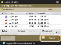 Visa lagringsplatsen och tryck på <Scanna>.