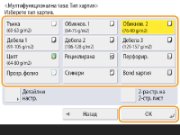 <OK>. Регистриране на често използван формат и тип на хартията в многофункционалната тава