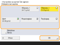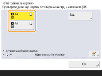 Ако типът на заредената хартия не е показан, натиснете <Детайлни настр.>, за да го изберете от списък.