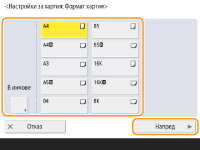 <Настройки за хартия>, за да се покаже екранът <Настройки за хартия>.