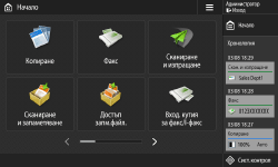 В екрана <Начало> натиснете бутоните за функции, за да покажете екрана с основни функции, от който можете да получите достъп до основни функции, като копиране, изпращане на факс и сканиране. Макар че елементите за показване и настройване в екрана с основни функции се различават в зависимост от функциите, можете да промените настройките според нуждите си.