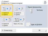 Само А4 хартия може да се използва за <Book 2-Sided>.Поставете оригиналите върху стъклото за документи при използване на <Book 2-Sided>. |