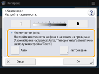 ![]() | Можете да регулирате наситеността на фона. Това ви позволява да правите ясни копия на оригинали, като напр. вестници или оригинали с цветен фон. Настройване на наситеността на фона на копията |