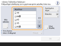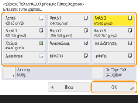 <OK>. Καθορισμός συχνά χρησιμοποιούμενου μεγέθους και τύπου χαρτιού για τον δίσκο πολλαπλών χρήσεων