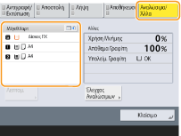Το χαρτί μπορεί να μην έχει μπλοκαριστεί στην τοποθεσία που ελέγχετε. Ακόμη και σε αυτήν την περίπτωση, ακολουθήστε τις οδηγίες που εμφανίζονται στην οθόνη για να ελέγξετε όλες τις τοποθεσίες. Η οθόνη που υποδεικνύει ότι υπάρχει εμπλοκή χαρτιού, εμφανίζεται συνεχώς έως ότου αφαιρεθεί το μπλοκαρισμένο χαρτί. Εάν πατήσετε <Κλείσιμο> στην οθόνη που υποδεικνύει ότι υπάρχει εμπλοκή χαρτιού, μπορείτε να συνεχίσετε να εκτελείτε άλλες λειτουργίες και να καθορίζετε ρυθμίσεις χωρίς να προβείτε άμεσα στην αφαίρεση του μπλοκαρισμένου χαρτιού. Μην αφαιρέσετε χαρτί από τοποθεσία διαφορετική από εκείνη που εμφανίζεται στην οθόνη ως τοποθεσία εμπλοκής χαρτιού. Αυτό μπορεί να προκαλέσει εμπλοκές χαρτιού και σε άλλες τοποθεσίες ή απουσία σελίδων σε έξοδο εγγράφων. |