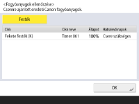 Ellenőrizze a fogyóanyagok részletes állapotát.
