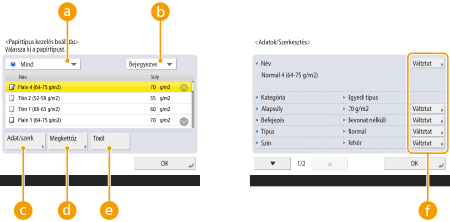 Egyedi papírtípusok bejegyzéséhez és a bejegyzett egyedi papírtípusok beállításainak megváltoztatásához rendszergazdaként kell bejelentkezni. Bejelentkezés a készülékre Az egyedi papírtípus bejegyzésekor a papírforrást nem lehet megadni. A papírforrás bejegyzésével kapcsolatos további információkért lásd: Papírfiókba helyezett papír méretének és típusának megadása. A bejegyzett egyedi papírtípusok adatait importálni/exportálni is lehet, így másik Canon készülékkel is megoszthatja őket. Önálló beállítások importálása/exportálása |