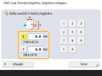Nurodykite <X> ir <Y> kraštinės ilgį. Paspauskite <X> arba <Y>, kad skaičių mygtukais įvestumėte kiekvienos kraštinės ilgį.