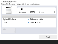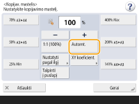 Jei <Autom. rūšiavimas> nustatytas į <Įjungt.>, įdėjus originalus į tiektuvą, automatiškai įsijungia „Collate“ (rūšiavimo) režimas. <Autom. rūšiavimas>
