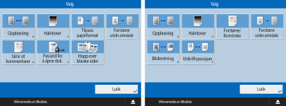 Noen av modusene beskrevet her, refererer til modusen til <Kopi>-funksjonen.