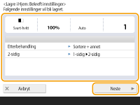 spesifiser kopiinnstilingene. <Hjem>-skjermbilde