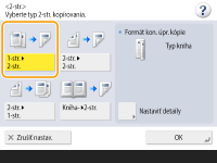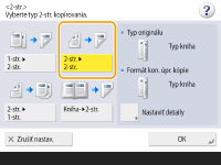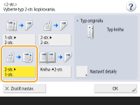 Nastavte možnosť <Typ originálu> a <Formát kon. úpr. kópie> a stlačte tlačidlo <OK>.