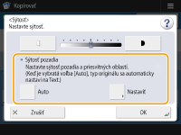 | | Môžete upraviť sýtosť pozadia. Vďaka tomu môžete vytvárať zreteľné kópie originálov, ako sú napríklad noviny či originály s farebným pozadím. Nastavenie sýtosti pozadia kópií |