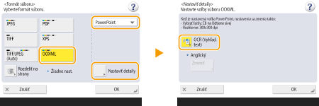 1 | Vyberte možnosť <OOXML> z rozbaľovacieho zoznamu vyberte možnosť <PowerPoint>. stlačte položky <Nastaviť detaily> <OCR (Vyhľad. text)>.![]() |