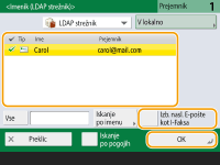 Prejemnike, registrirane v strežniku LDAP, lahko poiščete in izberete.