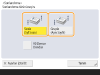 ![]() | Besleyiciden iki veya daha fazla kopya kopyalarken, çıktı sırası için sıralamayı veya gruplamayı seçebilirsiniz. Sıralı sayfa düzenine göre yazdırmak için "Sırala" öğesini seçin. Birinci sayfa için 10 yaprak, ikinci sayfa için 10 yaprak ve benzeri gibi her bir sayfanın paketini yazdırmak için "Grupla" öğesini seçin. |