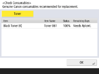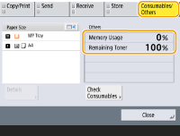 میتوانید مقدار باقیمانده مواد مصرفی را از Remote UI (واسطه کاربر از راه دور) بررسی کنید. بررسی وضعیت دستگاه |