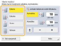 ![]() | Koadernatzeko marjinak egin ditzakezu grapatzeko edo zuloak egiteko. Koadernatzeko marjinak ipini ditzakezu orrien aurreko eta atzeko aldean indibidualki. |