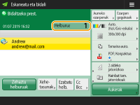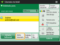 Eskanerraren oinarrizko funtzioen pantailaHelbide-liburuan helmugak zehaztea