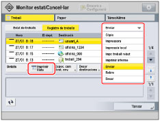 Si es cancel·la un treball d'enviament, s'imprimeix <ATURAR> a la columna Resultat de l'informe d'enviament.