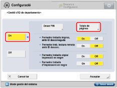 Premeu [Opcions de gestió] → [Gestió d'usuaris] → [Gestió d'ID de departaments].