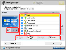 a la part superior dreta de la pantalla, apareixerà la pantalla següent. Seleccioneu les opcions a la pantalla que apareix per configurar la pantalla del menú principal.