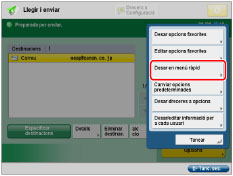 El nombre de botons personals que podeu desar no pot superar el màxim i dependrà de la capacitat de la memòria de la funció Menú ràpid. Si no s'estableix la Gestió d'ID de departaments, no es visualitzaran els botons personals. |