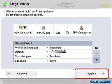 Si seleccioneu [On], les operacions desades al botó s'iniciaran sense confirmar les opcions quan premeu el botó desat. No cal que premeu
