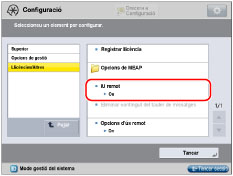 Activeu [IU remot] a [Opcions de gestió] (Configuració). També és recomanable configurar [Opcions d'informació del dispositiu] a [Gestió del dispositiu] (Configuració).