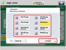 Si se selecciona [OOXML] com a format de fitxer, només es pot enviar amb [300x300 ppp] o [600x600 ppp].