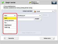 [Comença per]: | El resultat ha de començar amb el text que s'hagi introduït. |