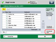 Si premeu [Iniciar cerca] sense especificar cap criteri de cerca, es mostren totes les adreces emmagatzemades al servidor LDAP. |
