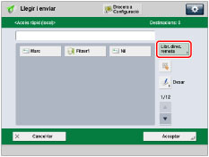 Per utilitzar els botons d'accés ràpid d'un equip servidor, cal especificar les opcions d'[Obtenir llibreta adreces remota]. (Vegeu " Obtenció de la llibreta d'adreces remota".) |