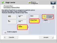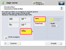 → [Llegir i enviar] → especifiqueu la destinació → premeu el botó Format de fitxer.