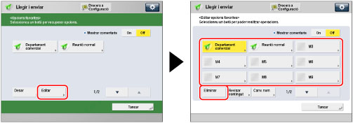 Premeu [Editar] → seleccioneu el botó que vulgueu eliminar → premeu [Eliminar].