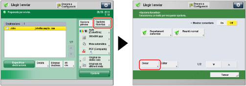 → [Llegir i enviar] → establiu la destinació i les opcions d'enviament que vulgueu desar.