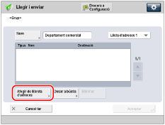 Si voleu crear una adreça de grup, és necessari desar prèviament les destinacions que voleu emmagatzemar (com les adreces de correu electrònic i adreces de servidors de fitxers). |