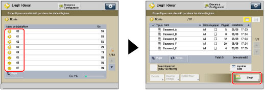 Si col·loqueu originals de diferent mida a l'alimentador, establiu [Originals de diferent mida]. (Vegeu "Originals de diferent mida".) Si voleu llegir originals d'una cara i de doble cara i desar-los com a documents de doble cara, dividiu els originals en lots d'una cara i de dues cares. Per exemple, si el primer lot està format per originals de doble cara, establiu [Original de doble cara]. Per tant, cal que establiu o cancel·leu manualment [Original de doble cara] per a cada lot d'originals que vulgueu llegir. Resulta útil emmagatzemar primer els originals en una bústia i imprimir-los posteriorment amb el mode Fusionar fitxers si no es poden preparar tots els originals alhora o si es vol especificar diferents opcions per a cada original. (Vegeu " Impressió de fitxers emmagatzemats en una bústia".) |