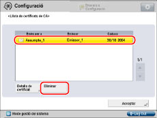Seleccioneu el certificat de CA que voleu eliminar → premeu [Eliminar].