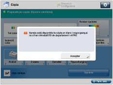 Si es prem l'opció [Còpia/Impressió en negre] per iniciar sessió mentre l'opció [Permetre treballs còpia/impr. blanc i negre] està activada, a la pantalla de funcions bàsiques de còpia apareix un missatge que indica que només és possible la còpia en blanc i negre.
