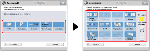 Podeu desar modes a les tecles de drecera que apareixen a la pantalla de còpia. Podeu desar fins a cinc botons d'[Opcions] i [Opcions favorites].