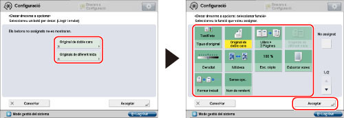 Premeu un botó de drecera → seleccioneu l'opció que voleu desar al botó → premeu [Bé].