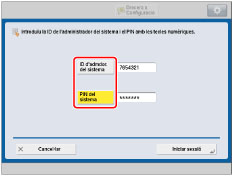 Si s'han seleccionat les opcions de l'administrador del sistema (l'identificador de l'administrador i el PIN del sistema)