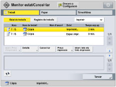 Si heu activat [Department ID Management] o [Limitar funcions] per a [Gestió d'ID de departaments], és possible que la pantalla d'inici sigui diferent de la pantalla que s'ha establert perquè aparegui com a pantalla predeterminada a l'inici. Si la [Gestió d'ID de departaments] està activada, i si s'estableix una funció restringida per Limitar funcions per a la pantalla predeterminada, a l'inici apareix la pantalla Menú principal. (Si la [Gestió d'ID de departaments] està activada, la funció [Còpia] està restringida per Limitar funcions.) Per mostrar la funció establerta per a la pantalla d'inici predeterminada, seleccioneu la funció a la pantalla Menú principal → introduïu l'ID de departament i el PIN a la pantalla Iniciar sessió. Si totes les funcions de [Limitar funcions] de la [Gestió d'ID de departaments] estan activades, encara que activeu l'opció [Obrir Monitor estat/Canc.], a l'inici apareix la pantalla Iniciar sessió. Si premeu , apareix la pantalla Monitor estat/Cancel. Si voleu veure la pantalla Monitor estat/Cancel., no cal cap ID de departament ni PIN.Per a més informació sobre la Gestió d'ID de departaments, vegeu "Especificació de la gestió d'identificadors de departament". |